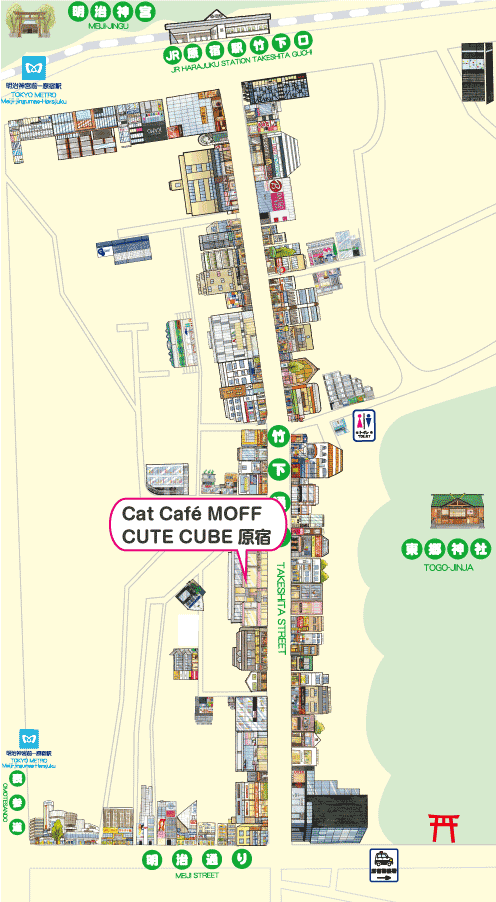 | Cat Café MOFF CUTE CUBE 原宿店 | 渋⾕区神宮前1-7-1 CUTE CUBE 3F | 03-6434-5120 | map | 猫カフェ | |
