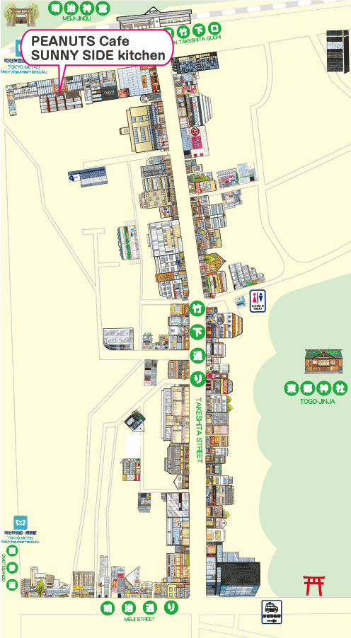 | PEANUTS Cafe SUNNY SIDE kitchen | 渋谷区神宮前1-14-30 WITH HARAJUKU B2F | 03-6434-0046 | map | カフェ | |