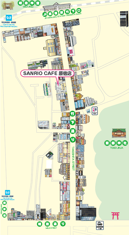 | SANRIO CAFE 原宿店 | 渋谷区神宮前1-16-4 竹下通りスクエア3F | 03-6910-5416 | map | レストラン | |