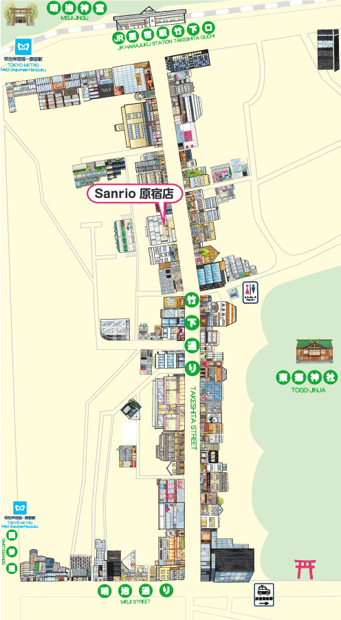 | Sanrio 原宿店 | 渋谷区神宮前1-16-4 竹下通りスクエア1~2F | 03-6910-5415 | map | 雑貨 | |